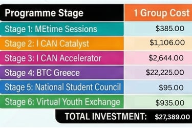 This group pricing enables high social impact by removing prices per participant for all youth/students who join online MEtime sessions as well as online I CAN Catalyst and Accelerator Courses.